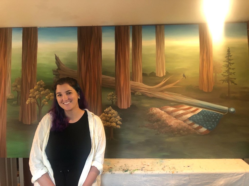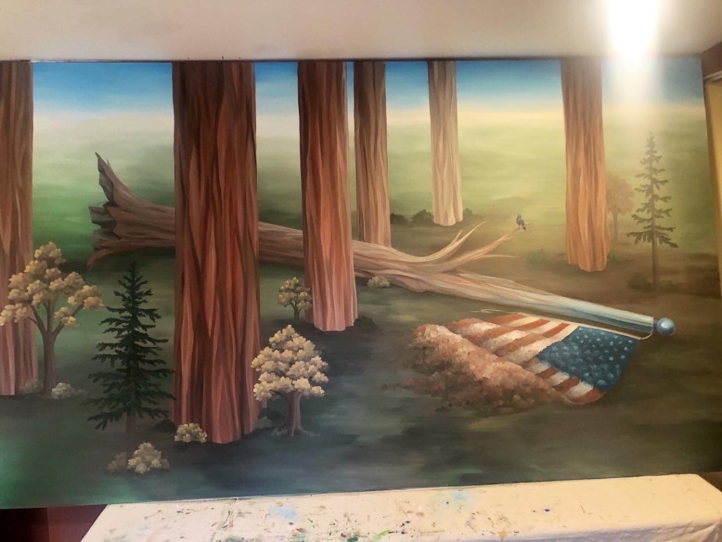 During the spring of 2020, we commissioned Harrisonburg, VA-based artist Malea Gascho to paint mural that interprets the prophetic vision of Wendell Berry’s poem Manifesto: “The Mad Farmer Liberation Front” from his volume of poetry, The Mad Farmer Poems. The poem contrasts the type of imagination and life that emerges when we recognize our creatureliness and connectedness to the earth instead of running the rat-race of human “progress.”