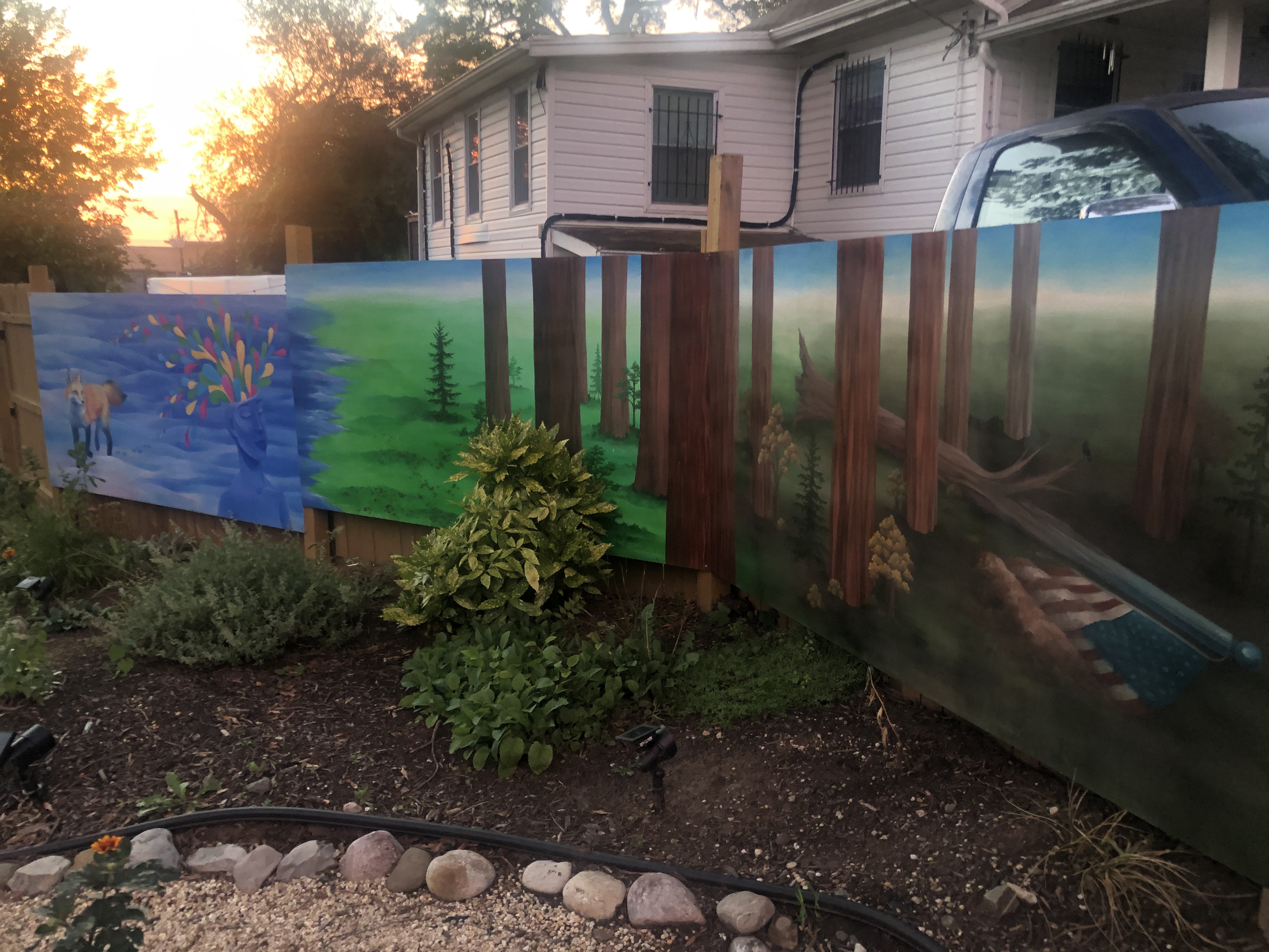 Each summer since then, she has added a 4’x8′ panel. The mural is part of our prayer garden and is meant to inspire and provoke all of us!
